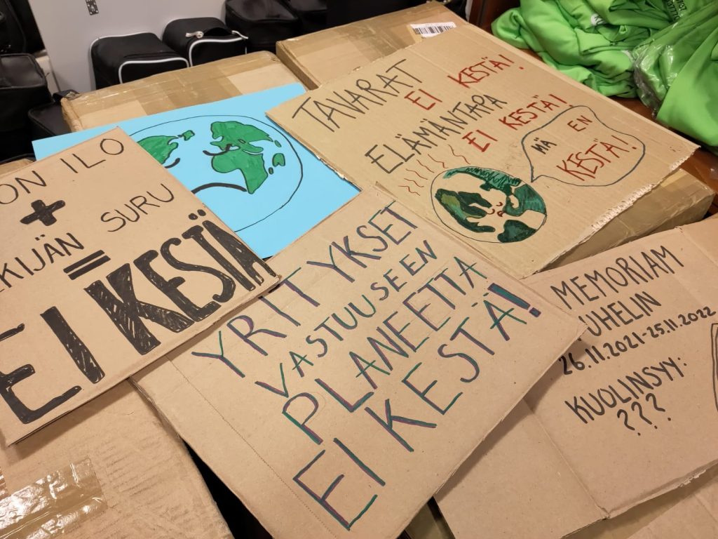 Kylttityöpaja järjestetään Kirkon Ulkomaanavun toimistolla Helsingissä osoitteessan Eteläranta 8 (3.krs). Paikalla on tarvikkeita kylttien tekemiseen sekä vegaanista evästä.